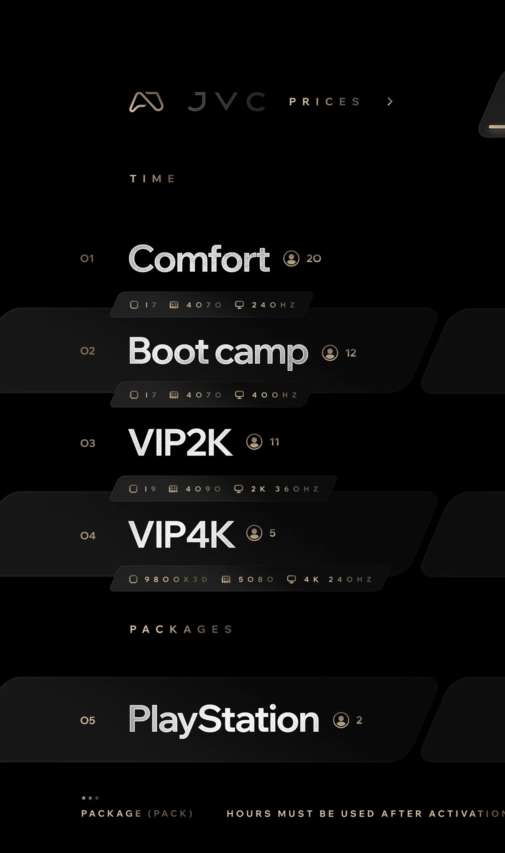 VIP 2K Equipped with 27’’ 2K monitors and high-end hardware, this zone offers a flawless competitive experience. The higher pixel density makes it ideal for FPS games where precise aiming over long distances matters.